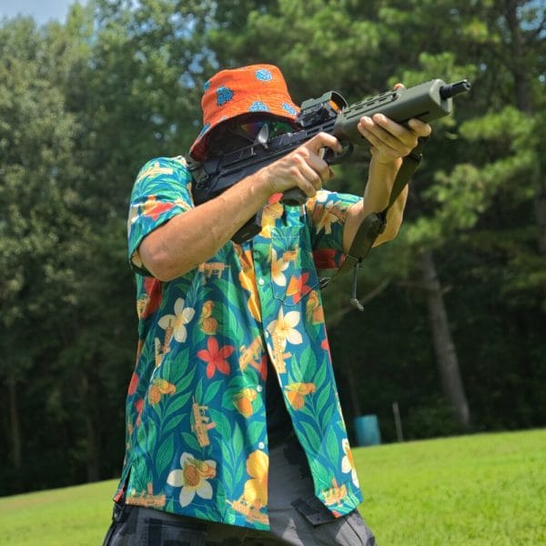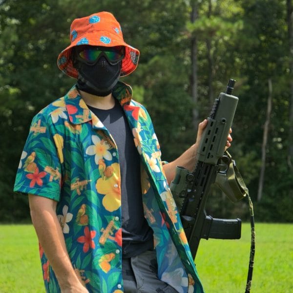 The flowy, breathable fabric keeps you comfy while the full-color, all-over print turns heads faster than a parrot with a suppressor.
